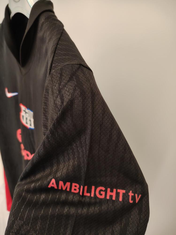 مزين بشعار النادي باللون الأحمر.