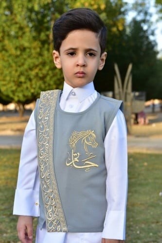 سديري اطفال بتصميم العيد شكل جديد مطرز بالاسم لثوب بشكله الانيق والمميز